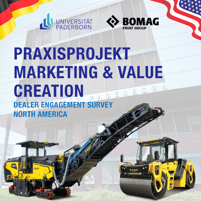 In diesem praxisnahen Modul entwickeln und führen Sie gemeinsam mit unserem Praxispartner BOMAG, einem weltweit führenden Hersteller von Maschinen für den Straßen- und Tiefbau, eine Händlerzufriedenheitsumfrage durch.
