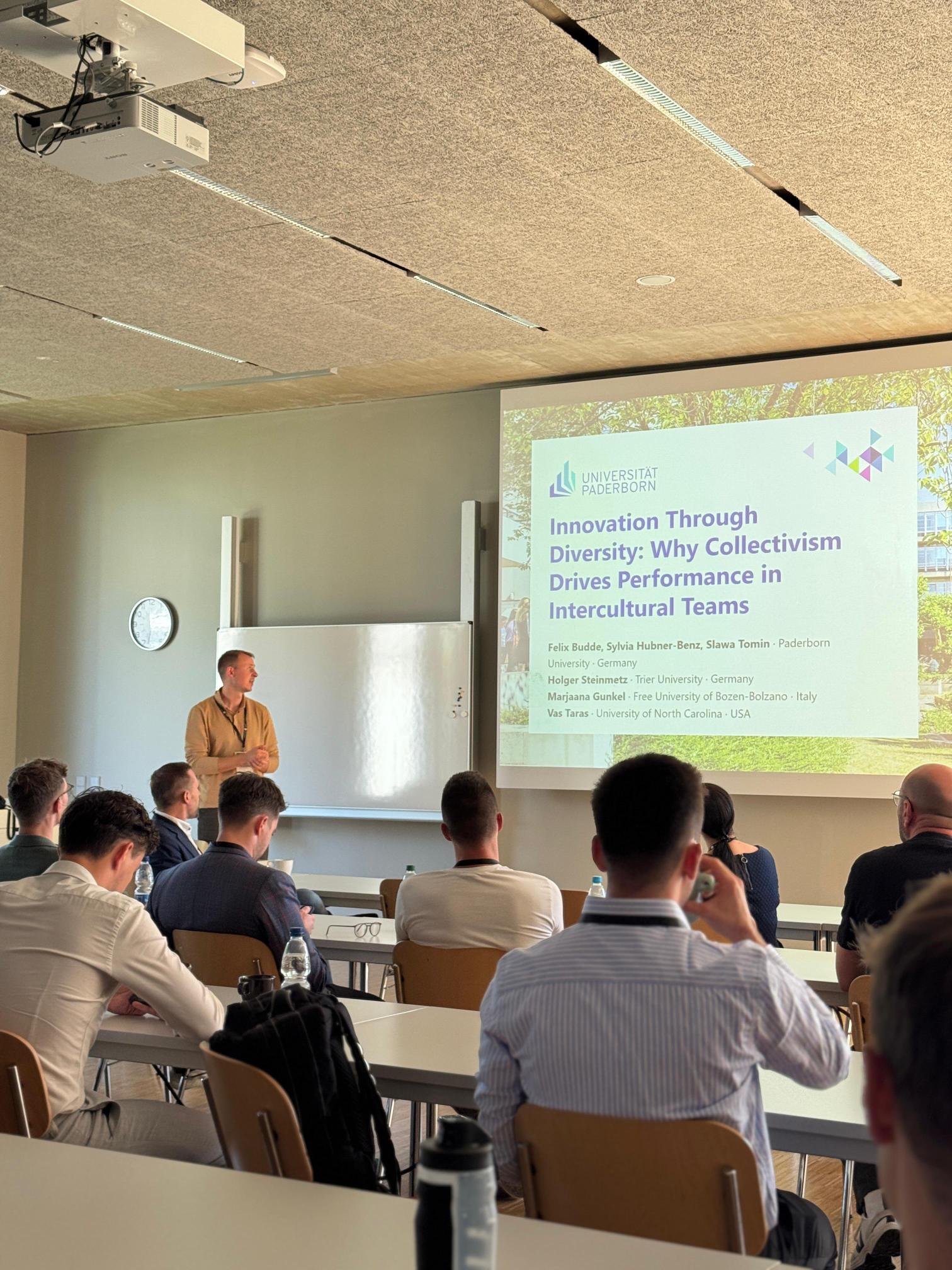 · Doktorand Felix Budde präsentierte seine Forschung zum Thema "Innovation Through Diversity: Why Collectivism Drives Performance in Intercultural Teams".