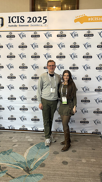 Auch inhaltlich war die ICIS für uns sehr erfolgreich: Gilbert präsentierte sein Paper „Trust Me If You Can! Examining the Role of Ransomware Darknet Platforms in Building Trust Between Hackers and Victims“ in der Privacy-&-Security-Session und zeigte, wie Ransomware-Gruppen gezielt Vertrauen bei Opfern aufbauen, um Zahlungsbereitschaft zu erhöhen. Theresa stellte in der Session IS for Social Good ihr Paper „One Stressor Fits Not All: Personality Profiles as Predictors of Divergent Technostress Vulnerabilities“ vor, das verdeutlicht, dass Technostress stark von individuellen Persönlichkeitsprofilen abhängt.