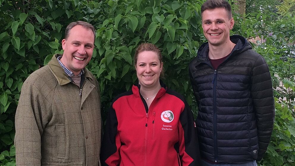 Foto (Universität Paderborn): Freuen sich auf eine rege Beteiligung von jungen Leuten bei der Umfrage „Tradition im Wandel“: (v. l.) Dr. Peter Becker vom Center for Risk Management (CeRiMa) der Universität Paderborn, Susanne Oschecker vom Bund der St. Sebastianus Schützenjugend (BdSJ) Diözesanverband Paderborn und Student Jonas Leineweber, der sich im Rahmen seiner Abschlussarbeit an der Universität Paderborn mit dem immateriellen Kulturerbe des Schützenwesens befasst.