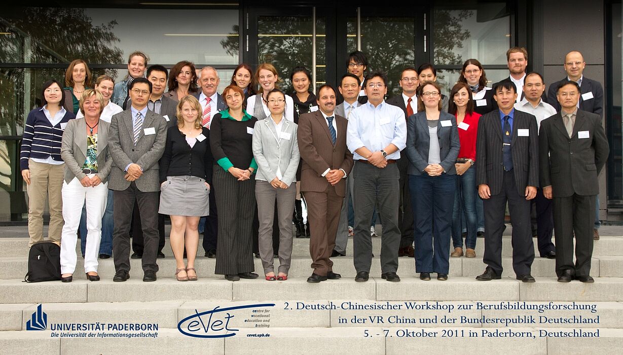 In Zusammenarbeit mit dem Institut für Berufsbildung der Tongji Universität, Shanghai/China und dem Institut für Allgemeine Pädagogik und Berufspädagogik der Technischen Universität Darmstadt fand vom 5. bis 7. Oktober 2011 der 2. Deutsch-chinesische Workshop zur Berufsbildungsforschung an der Universität Paderborn statt, an dem insgesamt 36 Professoren und wissenschaftliche Mitarbeiter aus China, Deutschland, Laos und Österreich teilgenommen haben. Diese Tagung schließt an den Diskurs zwischen Berufsbildungsexperten im deutsch-chinesischen Netzwerk im Oktober 2010 an der Tongji Universität, Shanghai an.