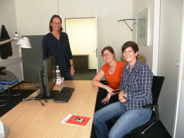 Foto: Im studienbegleitenden Programm „Mit dem Master in den Mittelstand“ gibt es die Möglichkeit eines sogenannten „Job Shadowings“, einer eintägigen Hospitation eines Studierenden im Unternehmen. Die Studentin Adriana Dreyer hat einen Tag lang Mitarbeiter der FORTIS IT-Services GmbH in ihrem Arbeitsalltag begleitet. Das Bild zeigt Sylvia Hein (links) und Janna Wieneke (rechts) von der FORTIS IT-Services GmbH mit der Studentin Adriana Dreyer.