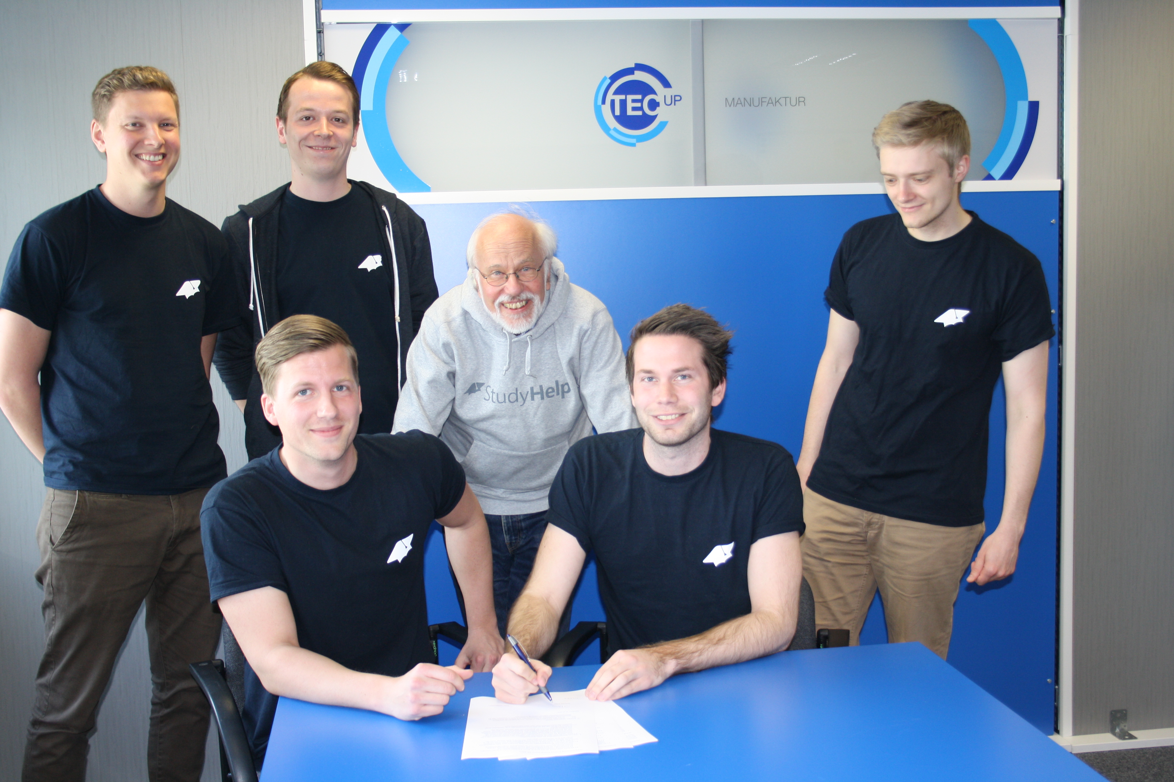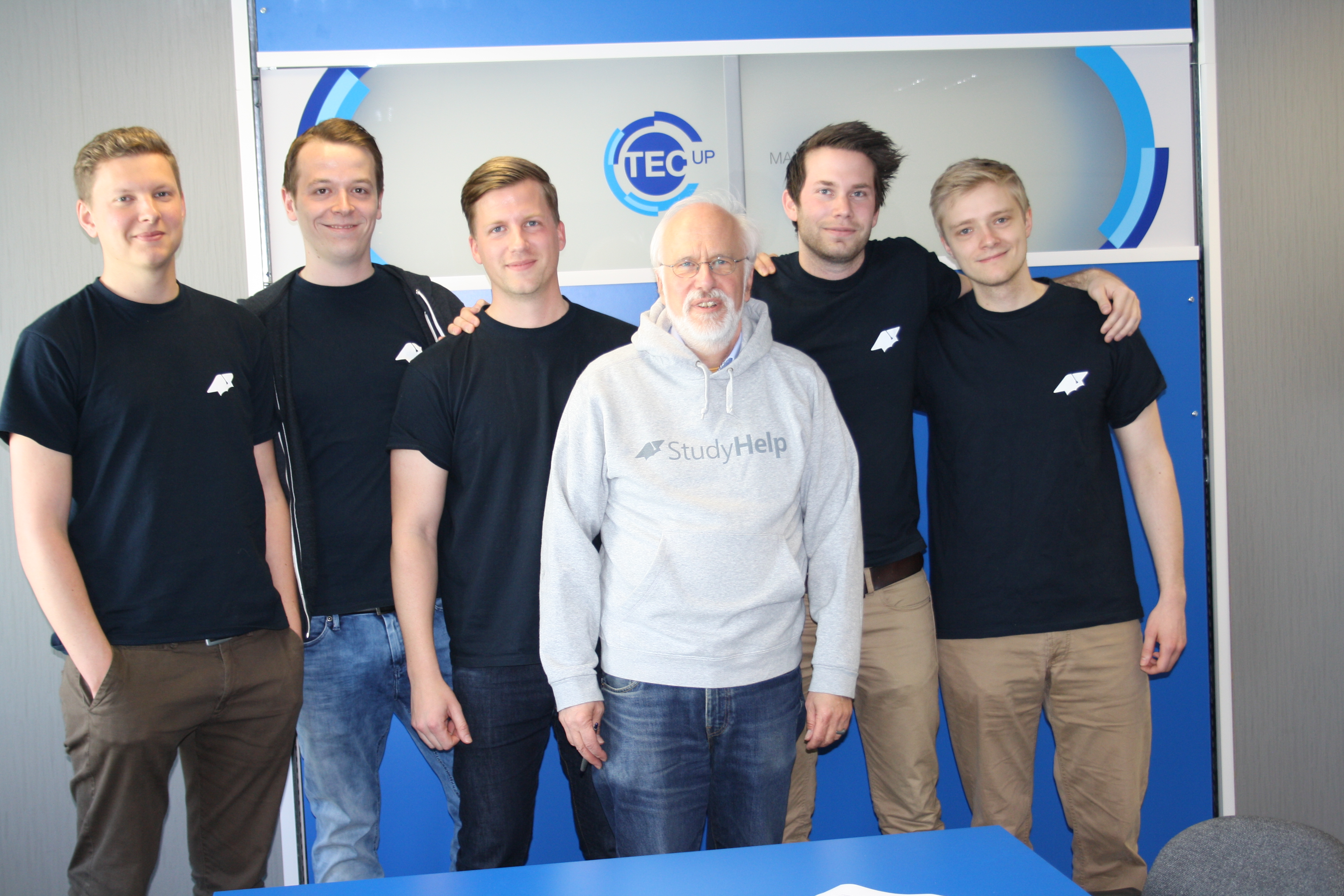 Das inzwischen fünfköpfige Team der StudyHelp GmbH (die beiden Gründer Daniel Weiner und Carlo Oberkönig mit Maximilian Fleitmann, Patrick Burmann und Julian Droste) macht mit ihren Crashkursen Studierende und Schüler in ganz Deutschland fit. „Im Gegensatz zum traditionellen Nachhilfeunterricht ist es uns wichtig, das Wissen komprimiert und auf Augenhöhe zu vermitteln“, so die Gründer. Neben Abiturvorbereitungen bietet StudyHelp auch Intensivkurse für Semester-Abschlussklausuren in Maschinenbau, BWL, Statistik, VWL und Wirtschaftsprivatrecht an. Derzeit sind sie an 76 Standorten zur Abiturvorbereitung und an 9 Unistandorten vertreten. Mit ihrem Leistungsangebot, bestehend aus Präsenz-Crashkursen, Online-Videos und Facebook-Chats, haben sie es sich zur Aufgabe gemacht, Bildung und Lehre zu revolutionieren: „Wir freuen uns, dass wir in Volker Bastert einen so tatkräftigen Unterstützer gefunden haben. Skalierung passiert nicht von selbst, nur weil wir unsere Leistung auch über das Netz anbieten“, freuen sich die Gründer über die neue Herausforderung.