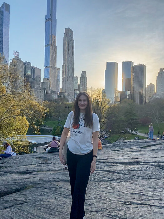 In ihren Pausen geht Kristine oft rüber in den Central Park. Es fühlt sich für sie surreal an, zwischen den Anzugträger*innen herzulaufen, die vermutlich auf dem Weg zu ihren wichtigen Jobs sind. Kristine ist mitten drin und kommt nicht heraus aus dem Stauen: „New York verkörpert den American Dream. Man hat in dieser Stadt das Gefühl, wirklich alles schaffen zu können. Überall kann man etwas Neues sehen und erleben - egal ob Broadway, Baseball oder die Skyline. Auch eine deutsche Bar habe ich entdeckt. Dort habe ich gemeinsam mit den anderen PEP-Teilnehmer*innen die EM-Spiele gesehen.“